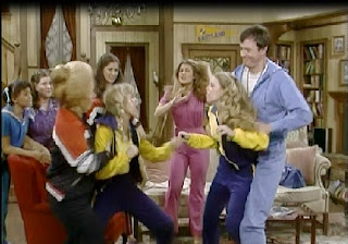 Sue Ann and Cindy return from their run arguing about whether Cindy pushed Sue Ann off her stride or legitimately beat her. They end up in actual fisticuffs, restrained by Mrs. Garrett and Mr. Bradley and egged on by Blair…