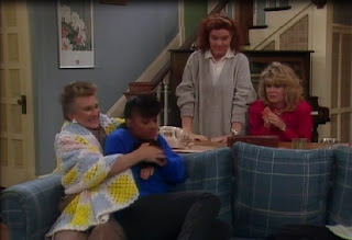 Suddenly there is a scream, causing Natalie to rush into Blair and Jo’s room as well. Tootie hides under her covers and Natalie and Blair huddle together, while Jo wants to go check it out. Natch.